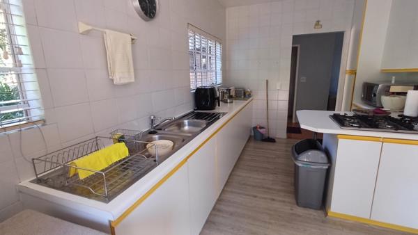 Outside the lounge area you step into a beautiful large open patio that overlooks the well maintained and landscaped private garden. There is also a JoJo water tank for those water cuts whenever they occur. The two garages that are separated from the house offers ample and safe parking for your cars, with two carports in front of the garages. The security gate, burglar bars and electric fence gives you and your loved ones peace of mind. Its pet friendly!