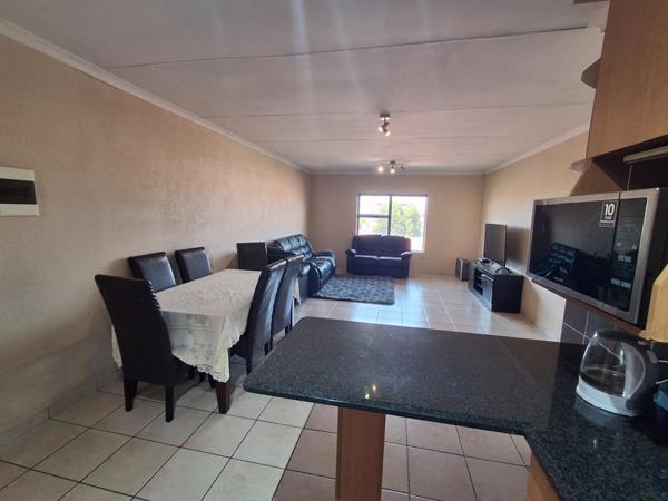 The apartment is on the top level with great views. you are welcomed by the open plan spacious lounge, dining and kitchen. The kitchen has modern finishes, space for fridge and washing machine, breakfast nook and ample storage space for all kitchen essentials