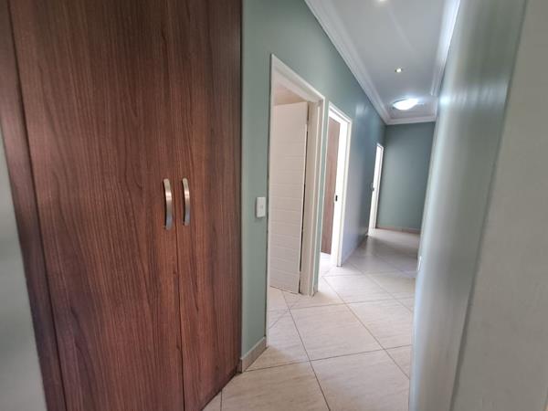 All three bedrooms are generously sized and come with built-in cupboards. The main bedroom features an en-suite bathroom with a double basin, while the second bathroom is also a full bathroom, ensuring ample amenities for the whole family.