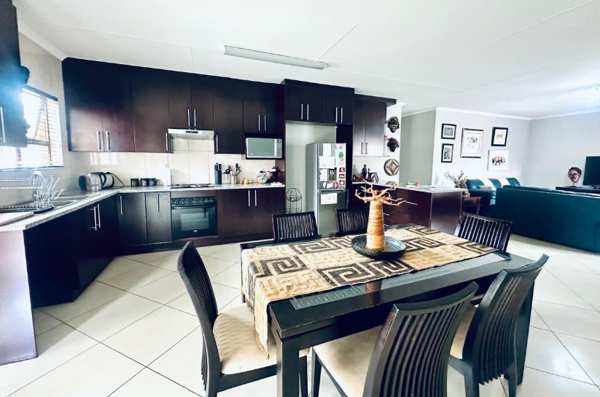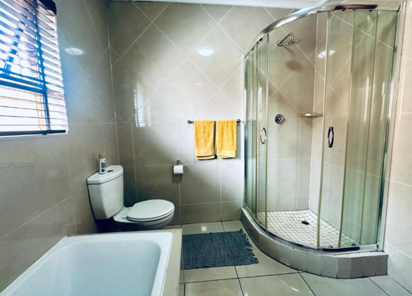 This delightful 3-bedroom cluster home offers a harmonious blend of comfort and modern living. Each bedroom is equipped with built-in cupboards, providing ample storage space. The home features two well-appointed bathrooms, fitted with a bath, shower, basin, and toilet, ensuring convenience for the entire family.