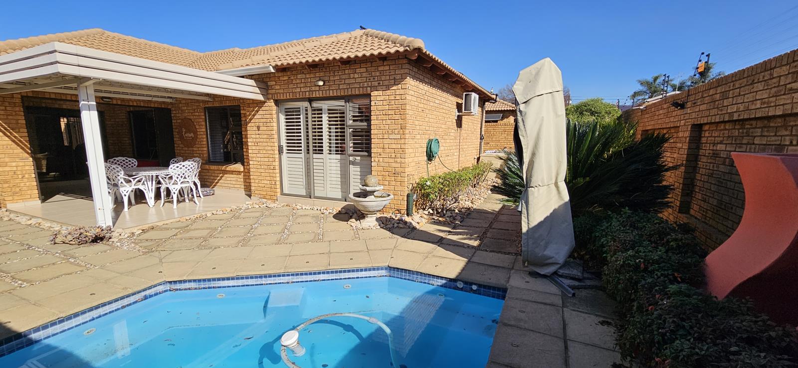 This neat unit boasts an open plan kitchen with granite tops and gas stove, dining area and lounge with doors leading to the covered patio/braai room, garden and a small pool. There are 3 bedrooms with built in cupboards and 2 bathrooms.