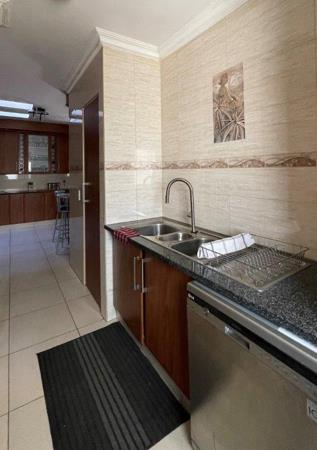 It boasts three spacious bedrooms upstairs with built-in wardrobes. There are also two sparkling full bathrooms upstairs, one being an onsuite to the main bedroom, and the other bathroom is shared between the other two bedrooms. Downstairs there is a guest toilet. There is an open area upstairs that can used as a study area. The kitchen with lovely built-in cupboards for great storage space in this home is modern with nice granite counter tops and a breakfast nook plus a scullery with beautiful built-in cupboards and space for a washing machine and dryer or dishwasher is also available. There is an open plan feel vibe that makes this home special. The lounge area is large with two large dining areas. There are two sliding doors in both lounge and dining area.