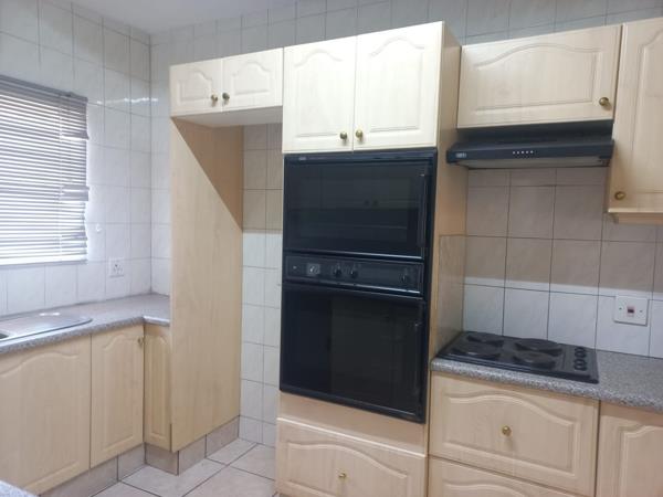 Kitchen: Fitted with an eye-level electric oven, electric stove, and ample cupboard space.