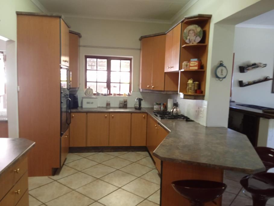 The residence comprises four well-proportioned bedrooms, including one with an en-suite bathroom, ensuring privacy and comfort. Built-in wardrobes in one bedroom offer significant storage solutions. The property features two bathrooms in total, both functional though presenting an opportunity for modern aesthetic updates. Externally, the expansive 2000 sqm erf size accommodates a private swimming pool and a well-maintained garden, providing an ideal setting for outdoor leisure and entertainment. Ample off-street parking is available, complemented by a two-car garage.