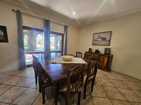 Beyond the interior a private oasis awaits. The expansive 1983 sqm erf hosts a magnificent outdoor patio shaded by a mature tree perfect for al fresco dining and relaxation. A sparkling swimming pool invites leisurely dips surrounded by a lush garden ideal for tranquil moments. The property is further enhanced by a built-in braai perfect for entertaining. Practical amenities include a double garage three additional parking spaces, staff accommodation with outside toilets and a charming Wendy house all contributing to a lifestyle of unparalleled convenience and comfort.