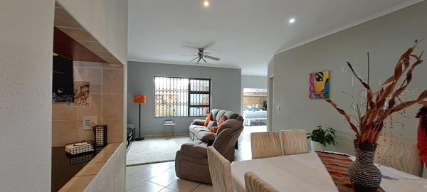 This home is designed for effortless entertaining, featuring a generous enclosed entertainment area with a built-in braai. Stacker doors open wide to create a seamless indoor-outdoor flow, perfect for gatherings with family and friends.