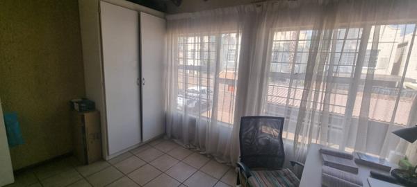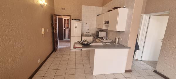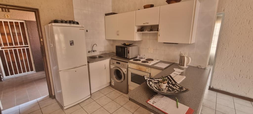 This very neat and spacious townhouse boasts two well sized tiled bedrooms with built-in wardrobes. A lovely open plan kitchen with melamine countertops and a breakfast nook, four plate stove with oven and space for a single fridge and washing machine makes this a very functional kitchen. All very neat and well set out. Open plan lounge and dining room area fully tiled floors giving it a spacious feel. A small balcony to relax in the sun. The ceilings are high and this give the place more of an open and big feeling.