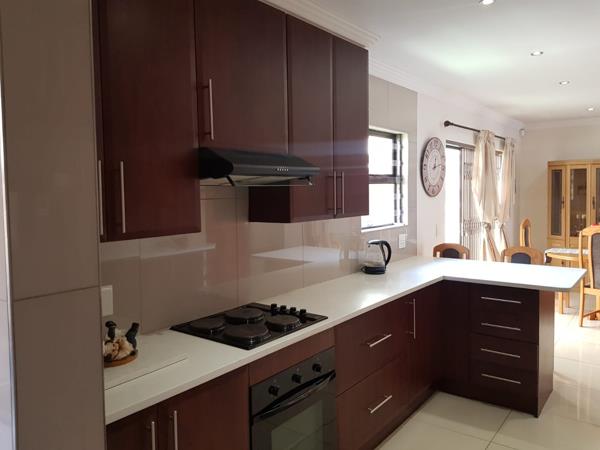 This lovely facebrick cluster home offers 3 bedrooms one bedroom has aircon, 2 full bathrooms main en-suite, open plan lounge, dining area and fully fitted kitchen with a breakfast nook area, scullery and a laundry area.