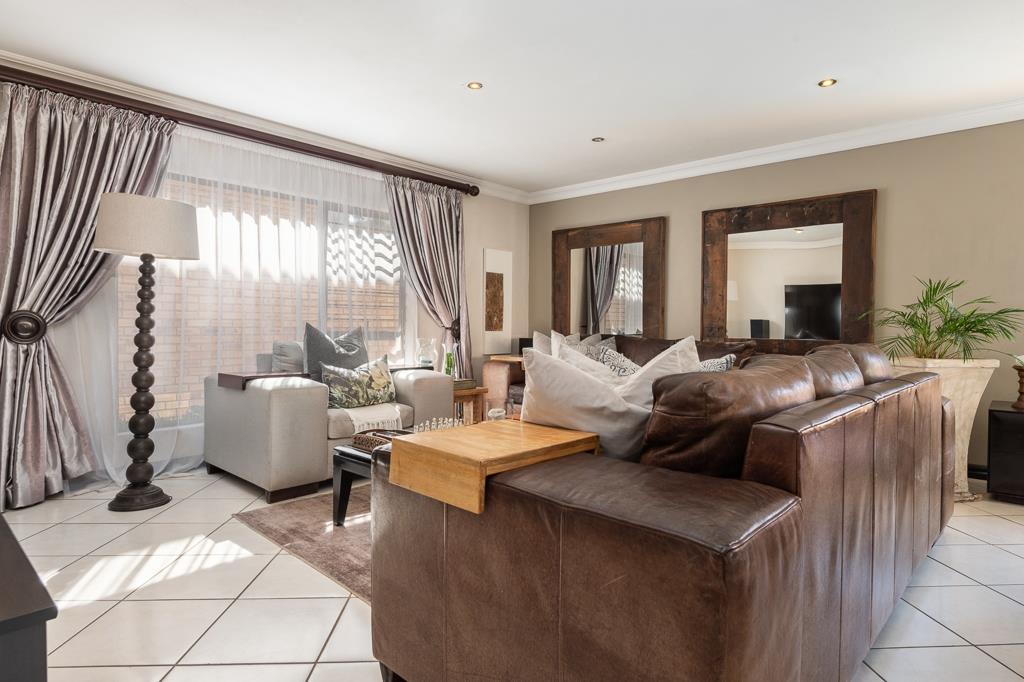 A guest toilet on the ground floor adds to the convenience of the home, while the enclosed patio, featuring a built-in braai area, presents an idyllic setting for outdoor entertaining. Beyond the patio lies a meticulously manicured garden, complemented by a private solar heated swimming pool, for year-round enjoyment.