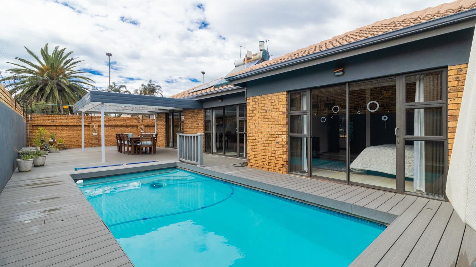 Step outside to a covered patio and sparkling private pool, ideal for relaxation and weekend gatherings. The face brick exterior keeps maintenance low, while prepaid electricity, staff quarters, and a double automated garage (with direct access into the home) add to the appeal.