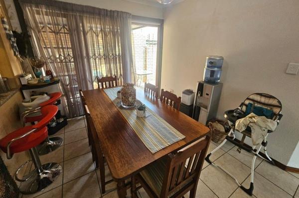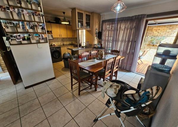 The home welcomes you into a spacious open-plan lounge and dining area, neatly tiled and flowing through wooden sliding doors onto a under cover deck patio an ideal spot for family gatherings and braais. The patio overlooks a well-sized, pet-friendly garden. Being a corner unit, the garden is larger than most, offering extra outdoor space.