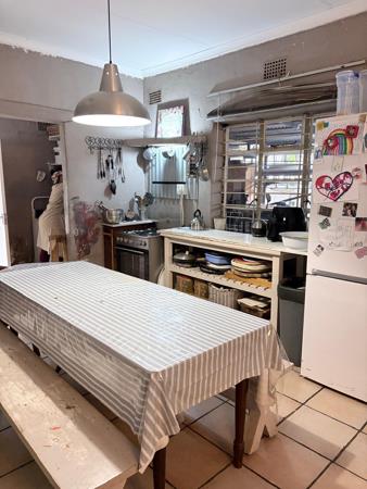 Kitchen with mica tops and built in cupboards, loose stove, 4 plate gas hob