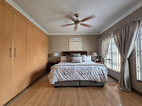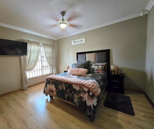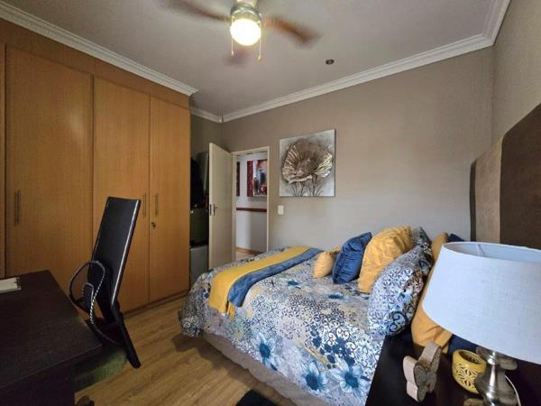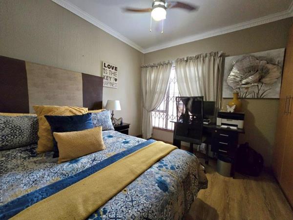 This home has three generous in size bedrooms, all with built-in wardrobes and large windows offering natural light, plus tiles flooring. Two luxury and modern bathrooms including a full master ensuite with a shower, bath, basin and toilet, designed for relaxation. The other full bathroom with a shower, bath, basin and toilet is shared among the two bedrooms. The living area space in this home gives you open plan lounge and dining room and kitchen feel and vibes, perfect for entertaining guests or enjoying family time includes an air conditioner. This home boasts of a well equipped kitchen with modern finishes, granite tops, ample cupboard space and room for all your appliances and also a gas stove. This home also features, a 545 watt solar panels and 10 KVA inverter. The enclosed entertainment area is tiled and has a built-in braai.