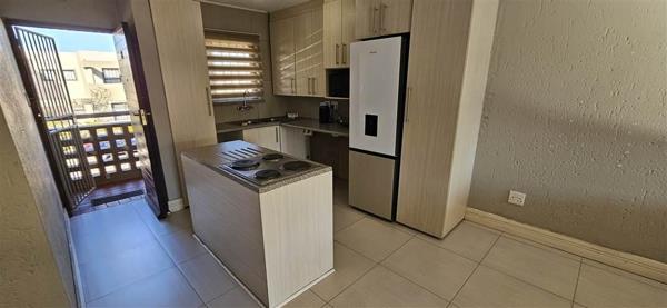 Step into a bright, open-plan living area that effortlessly blends a modern kitchen with a spacious lounge, leading out to a private, sun-soaked balcony perfect for relaxing or entertaining. The unit offers two tiled bedrooms with built-in wardrobes and a full bathroom fitted with a bath-shower combo.