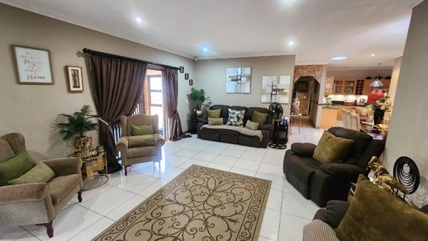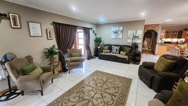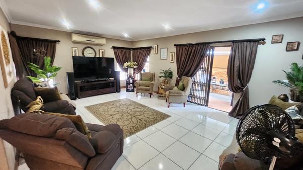 Open-plan lounge with sliding doors leading to the enclosed patio, and air conditioning for added comfort