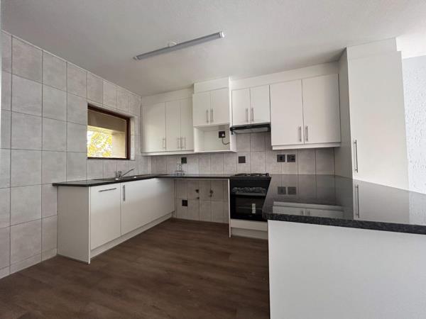 The modern kitchen has a brand new, never been used before electric stove / oven. New granite countertops and a decent amount of cupboard space.