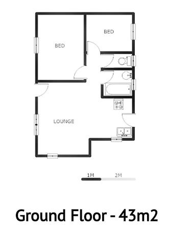 43 sqm floor size on a 150 sqm erf
