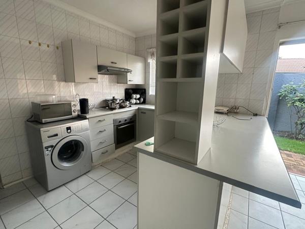 Outside, the property offers a compact, low-maintenance garden area, enclosed by high walls for privacy and security. This private outdoor space is perfect for relaxation. Further enhancing convenience and security, the property includes a single garage and features security bars on windows and a security gate, ensuring a safe living environment within the security complex.