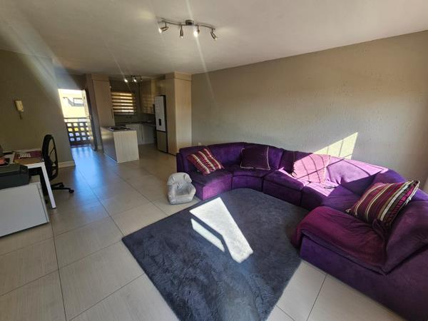 Spacious tiled open plan Lounge opening with double doors onto large balcony.