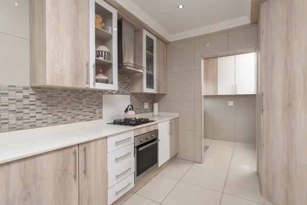 Inside the modern style kitchen, there are plenty of built in cupboards and counter tops for all your culinary needs. Separately is the scullery and laundry area.