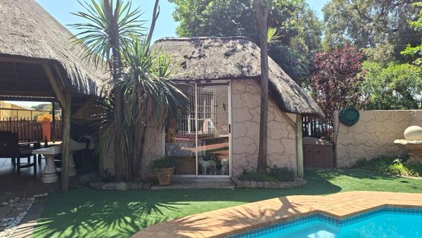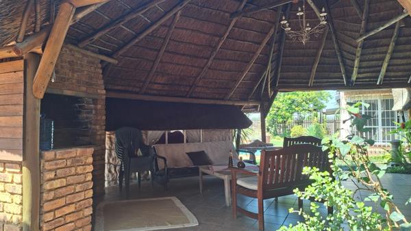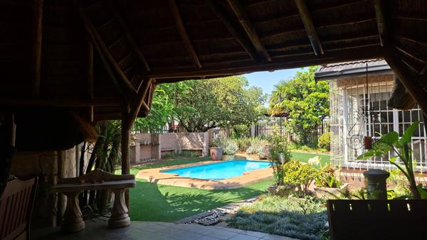 Adjoining the main house is a spacious flatlet which boasts a kitchen, lounge and dining area, a generous sized bedroom, and bathroom, all of this leads out to a beautifully paved and thatched patio. It also has it''s own entrance and paved carport.