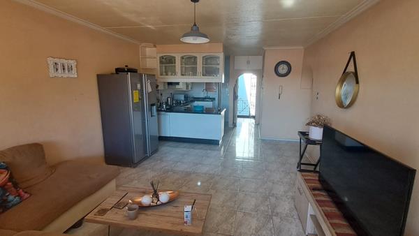 The living area is open plan with lounge and dining area.