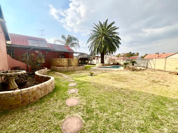 Show off your culinary skills in this vibrant and well lit kitchen with working and storage spaces galore, such as any combination of kitchen appliances, with a large interchangeable electric| gas stove. Large pantry andamp double door fridge. There are additional features such as prepaid electricity, bedroom and lounge air conditioners. Fiber ready. For the outdoor lovers, there is much to offer in the way of a well maintained garden, sparkling pool and, of course sizeable comfortable lapa, and a built-in braai area.