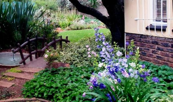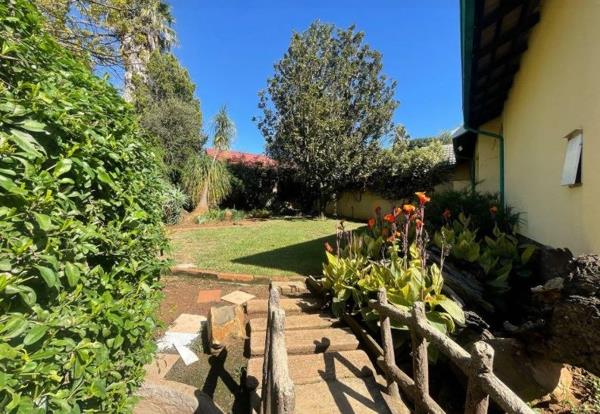 Outdoors, an entertainment-ready space includes a lapa and built-in braais, perfect for social gatherings. The established garden features mature trees and a peaceful atmosphere.