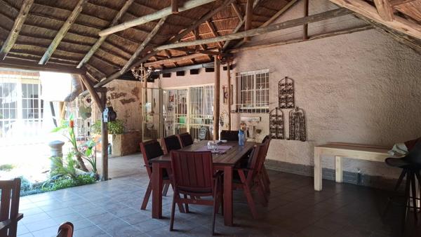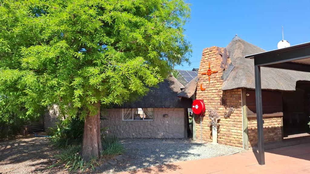 Flat: Tiled loungedining, full kitchen, 1 bedroom and bathroom. Own entrance and carport.
