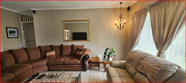 The charming open plan designed living areas consist of an open plan lounge plus TV room and dining area that brings an intimate atmosphere yet, with access to the patio with a built in braai overlooking the well-established garden with swimming pool, the atmosphere is like a breath of fresh air leisure