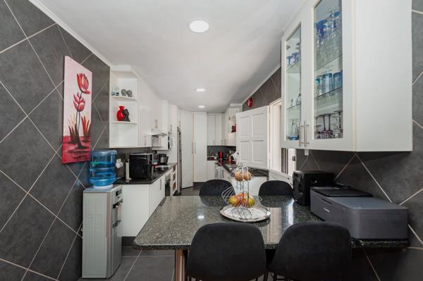Timeless family haven. This beautiful 4-bedroom family home boasts 2 en-suite bathrooms and a study, perfect for those seeking space and comfort. The open-plan kitchen and dining area flows seamlessly into the lounge, where a cozy fireplace awaits. Outside, the spacious garden features a pool, lapa with built-in braai, and plenty of room for outdoor entertaining. With a solar system ensuring uninterrupted power, tandem garage, double carport, covered area for boat or caravan and parking for 10 cars, this property ticks all the boxes. A truly impressive home waiting for the right family.