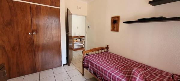 The home offers three spacious bedrooms with built in cupboards and ceiling fans, supported by two neat fully tiled bathrooms, one with bath, basin and toilet and the other with shower, basin and toilet.