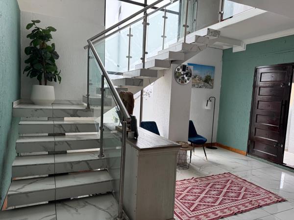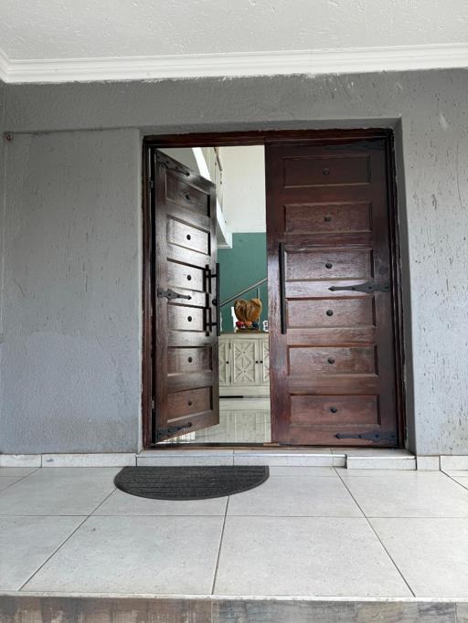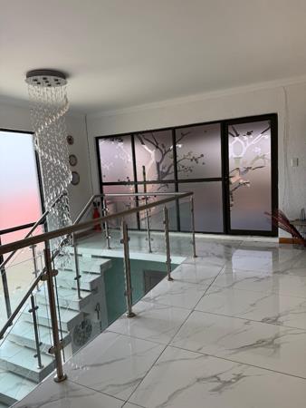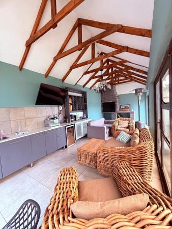 This is a modern double storey home consisting of 5 bedrooms, 3 of them have en suite bathrooms. Large family roomlounge, dining room, kitchen with gas stove and electric oven, 2 patios, triple garages, swimming pool, outside entertainment room. Staff quarters with bathroom.
