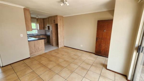 Large open plan tiled Lounge opening with sliding doors onto patio with build in braai and great views.