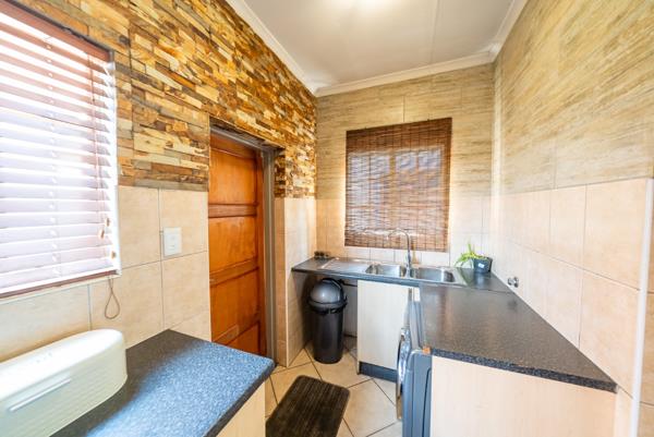 Tucked away in a sought-after security estate in South Crest, this immaculate three-bedroom home combines modern style with everyday comfort. The spacious lounge welcomes you with warmth and light, offering the perfect place to relax or entertain friends. The sleek kitchen, complete with a separate scullery, boasts ample cupboard space and modern finishesideal for those who enjoy cooking and hosting family gatherings. Each bedroom is generously sized and fitted with built-in wardrobes, while the main bedroom includes a private en-suite bathroom. A second elegant bathroom serves the rest of the home with ease.