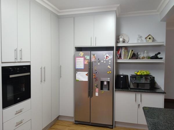 Outside, the property features a lovely garden and a driveway leading to two garages, with ample additional parking for up to six vehicles. Domestic rooms and outside toilets provide added convenience. Security is well-addressed with burglar bars on windows, an access gate, and electric fencing, ensuring peace of mind. This metropolitan and suburban setting in Alberton offers a desirable lifestyle for families, with pets allowed.