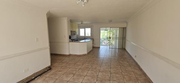 This ground floor unit comprises of a large open plan lounge and kitchen with a door leading to a spacious and private garden with a lapa. There are 3 bedrooms with built in cupboards and 2 bathrooms.
