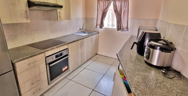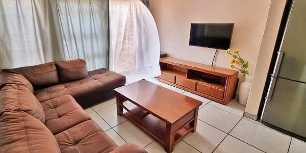 This townhouse boasts two bedrooms with built-in wardrobes and one full bathroom. Neat kitchen with space for two appliances. Open plan lounge and dining room opens up to balcony.