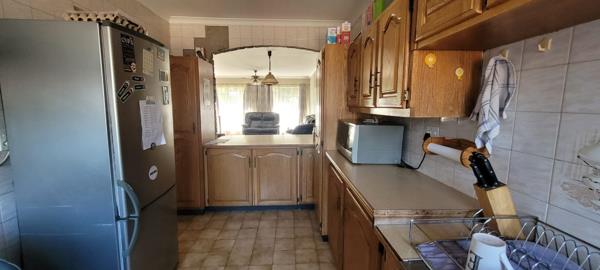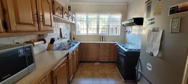 Entrance Kitchen Fitted with a loose 6-plate gas stove, extractor fan, wooden built-in cupboards, and a charming breakfast nook.