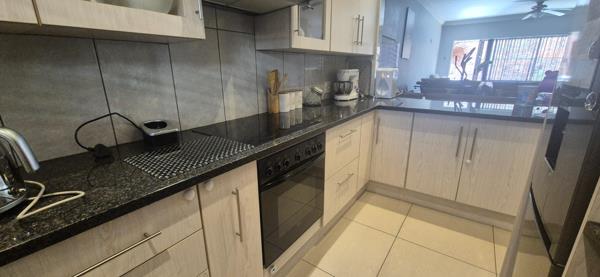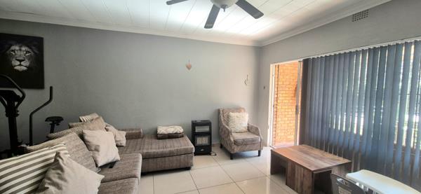 a Beautiful and modernised ground floor unit in a safe complex. The unit offers 2 spacious bedrooms with built-in cupboards, ceilings fans and blinds. The master bedroom opens to the 3rd room which could be a sunroom, playroom, study, 3rd bedroom, office. Modern tiles throughout and a large sunny balcony to sit and relax while enjoying the beautiful view of the Spruit which runs through the complex. a Single lockup garage is available for parking as well as an additional open parking. The first bathroom offers a bath, toilet and basin and the 2nd one, a shower, toilet and basin.