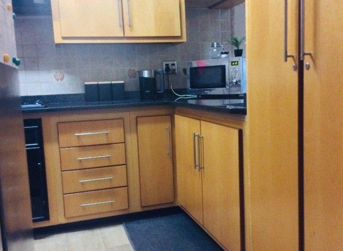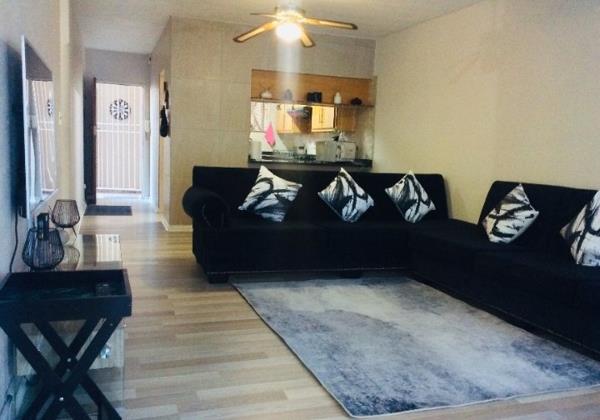 The dining area is open to the lounge and kitchen is modern, boasting a breakfast counter, tiled walls and finished with granite counter tops. The floors are wooden except for the main bedroom, kitchen and bathrooms. The apartment features features 3 spacious bedrooms with built-in cupboards, and 2 bathrooms. The main bedroom is very warm, fitted with lush carpet and a private en-suite bathroom. The bathrooms offer a bath for the en-suite and an equally maintained shower bathroom for the common bathroom.