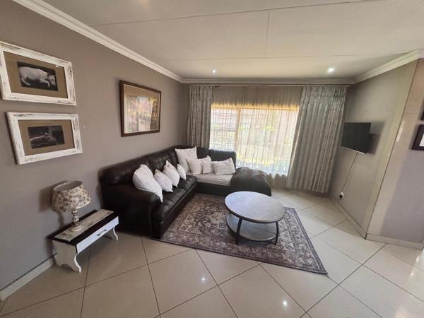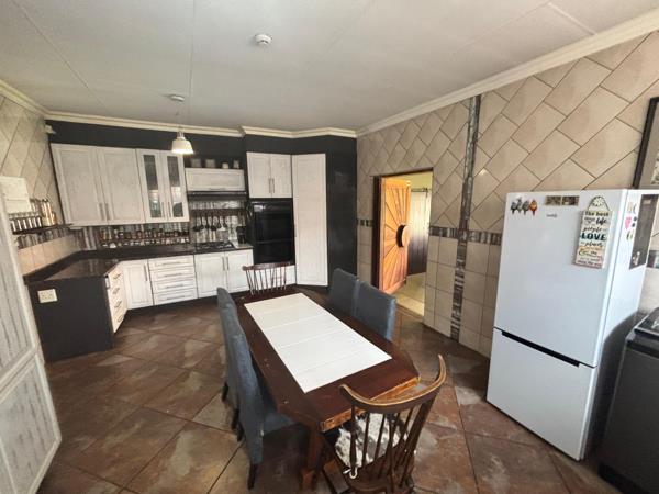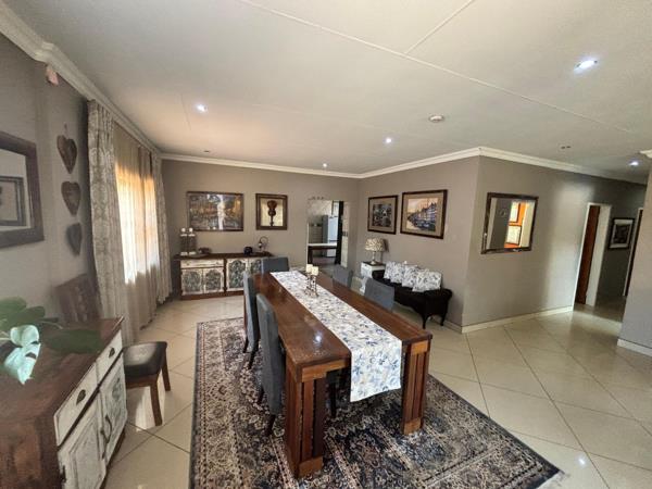 This beautifully maintained home features four bedrooms, two en-suite bathrooms, and a full family bathroom. The spacious open-plan lounge and dining area flows into a modern fully fitted kitchen. Outside, the property boasts a well-kept garden, double garage, secure parking for four vehicles, a built-in braai, and a round swimming pool with shade netting. Security is comprehensive. Extra features include solar panels and an inverter system, with the seller confirming no major defects.