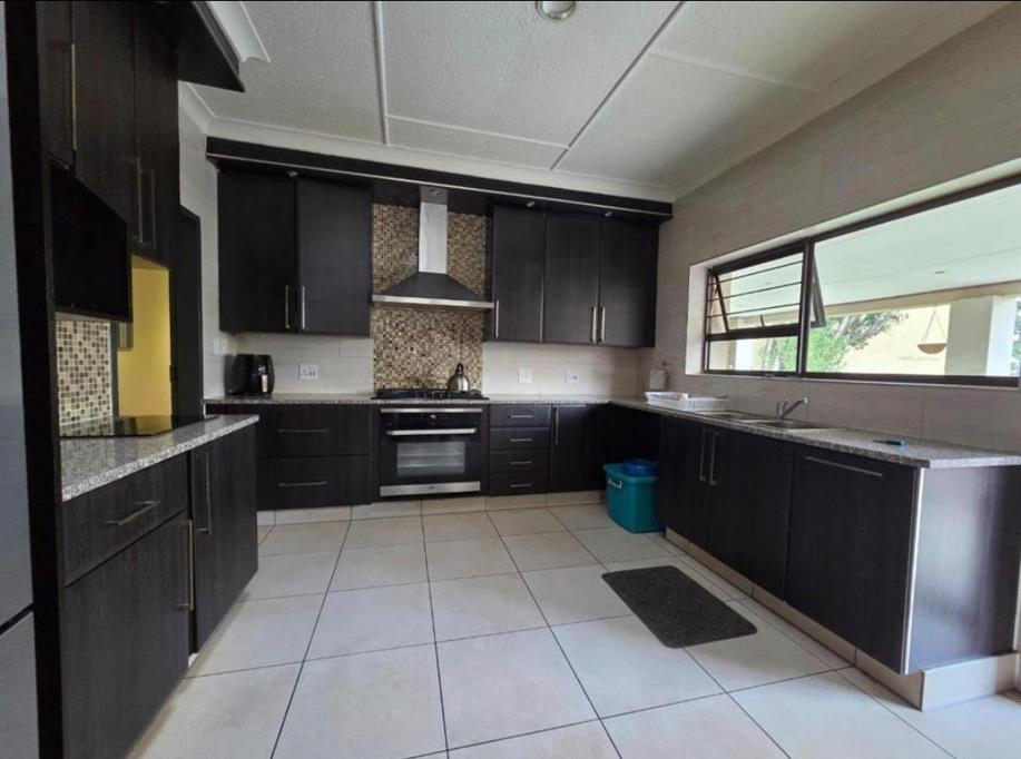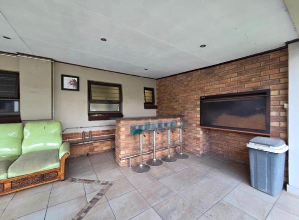 The heart of the home features an open-plan lounge and dining area, creating a welcoming environment for both relaxation and entertaining. The well-appointed kitchen is equipped with a gas stove, catering to culinary enthusiasts. Adjacent to the living space, a dedicated bar area provides an ideal spot for social gatherings, complemented by a built-in braai for outdoor entertaining.