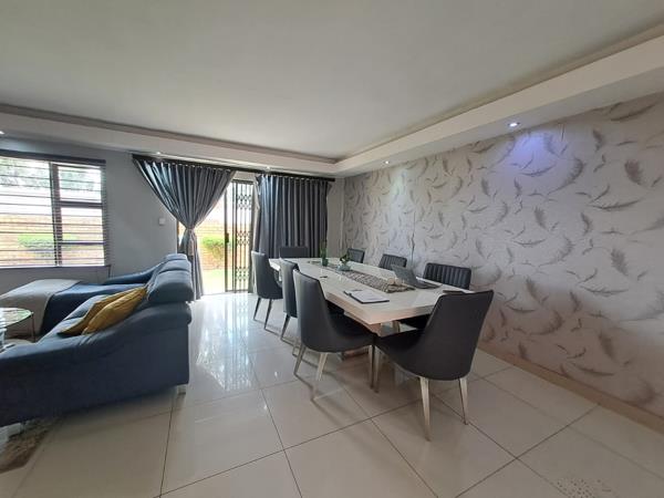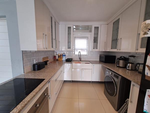 Well maintained and situated in a sought after and secure estate. 3 bedrooms, main bedroom with full en-suite bathroom. The second bathroom is bath, toilet and basin. Modern and open plan Kitchen with space for 1 appliance and lots of cupboards and counter space. Spacious open plan Lounge and Dining area which leads out onto a private garden. This open plan layout enhances the sense of space and if perfect for entertaining. Double automated garage with fixed cupboards.