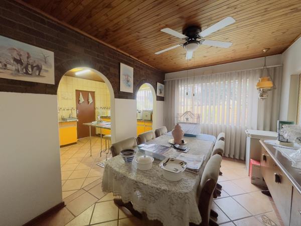 Outside comprises of a charming and thatched lapa with a built-in braai the ultimate outdoor entertainment space, a sparkling swimming pool, perfect for cooling off on hot days and enjoying weekends at home. This home is complete with a single garage plus a double carport, providing ample covered parking.