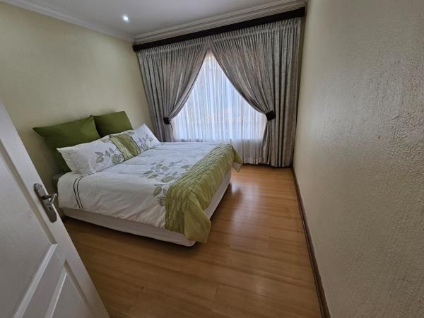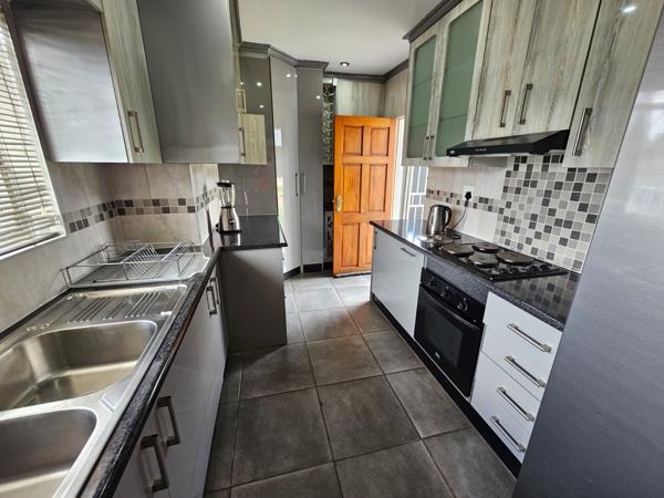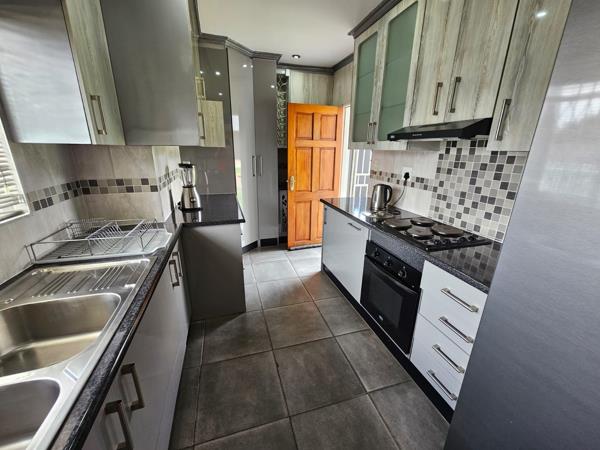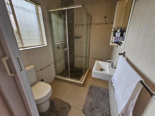 Step outside to discover a delightful covered entertainment area that surrounds a sparkling pool, ideal for relaxation and hosting gatherings. The home features three well-sized bedrooms, including a main suite with tiled flooring, built-in cupboards, and an en-suite bathroom. The second and third bedrooms are served by a newly renovated bathroom, complete with a modern vanity and bath.