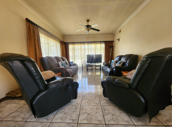 This home offers four spacious bedrooms with built-in wardrobes, tiled flooring and two full luxurious bathrooms of which one is onsuite to the main bedroom and a guest toilet. The stylish kitchen which is the heart of this home and comes with a gas stove, granite countertops and a scullery with a washing machine and dishwasher connection. An open plan dining room and lounge area that leads into an enclosed entertainment area with a built-in braai area.