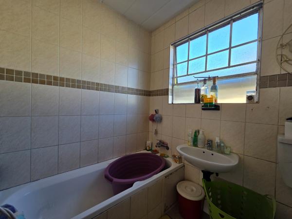 This lovely unit includes two generously sized bedrooms with built-in cupboards and tiled flooring. The modern, stylish bathroom is fitted with a bath, basin, and toilet.