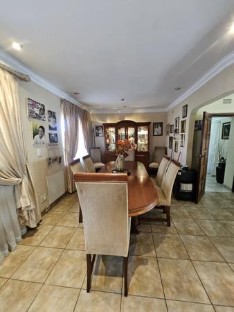 The home boasts an elegant home chefs kitchen with a pantry that is equipped with granite countertops and a scullery with ample space for appliances. The other side of the kitchen gives you convenient access to the exterior of the home. This kitchen is equipped with an induction stove, an extractor fan and a fitted oven. The dining room leads into the spacious formal lounge with a built-in bar. All these rooms connect you to the patio with a fitted wall oven for entertaining your guests and another pizza oven built conveniently into the entertainment space.