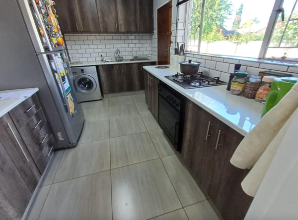 This home offers three spacious bedrooms with built-in wardrobes, tiles flooring, two full luxurious bathrooms, one being an onsuite to the main bedroom and a guest toilet. The stylish kitchen with granite countertops is the heart of this home and has a scullery with a washing machine and dishwasher connection. Open plan dining room and lounge area which leads into an enclosed entertainment area with a fitted bar.